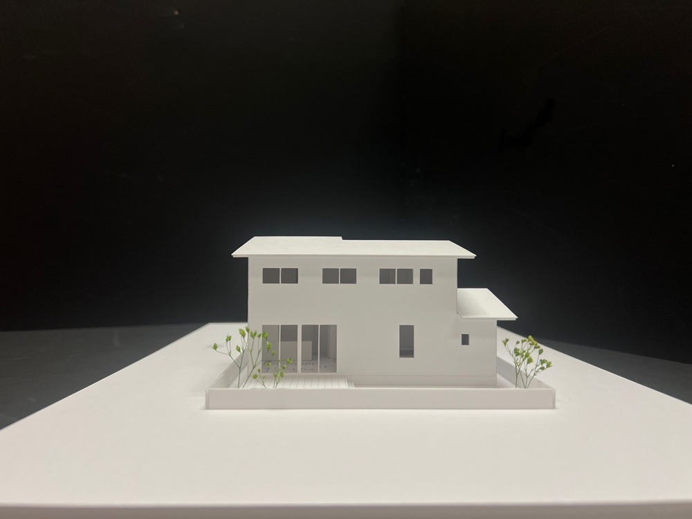 軒先を深くパッシブ設計とし、旗竿地形状の為、駐車場の計画をストレスなく設計しました!