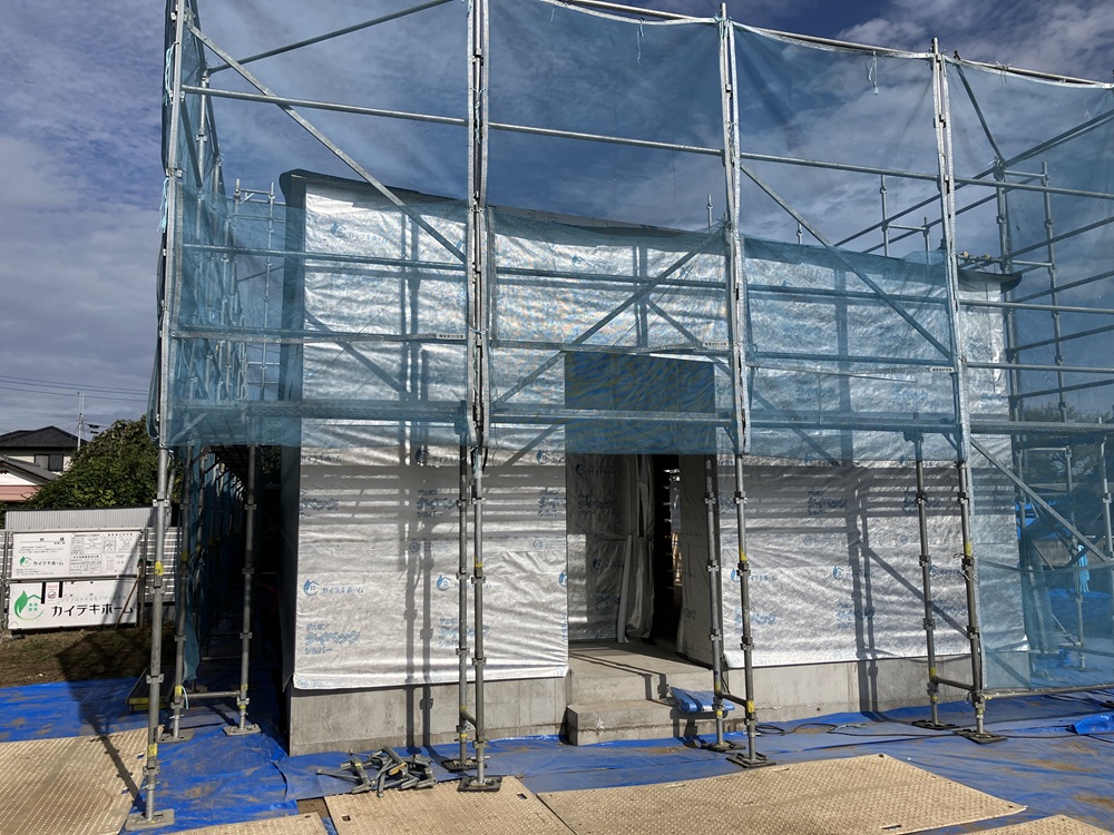 屋根のルーフィング、外壁は透湿防水遮熱シートまで工事が完了しました!