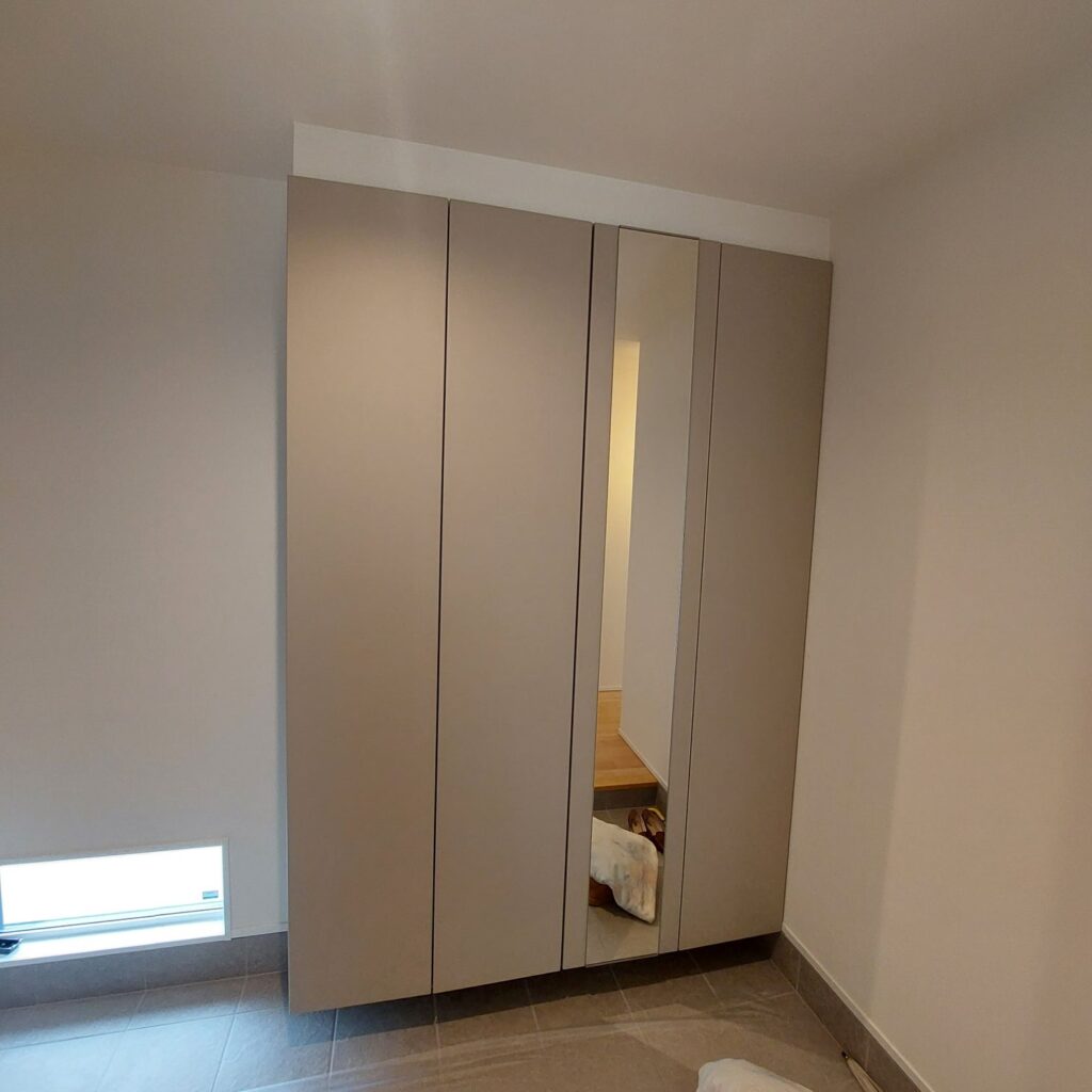 玄関にはフルトールタイプの玄関収納を取付けました。