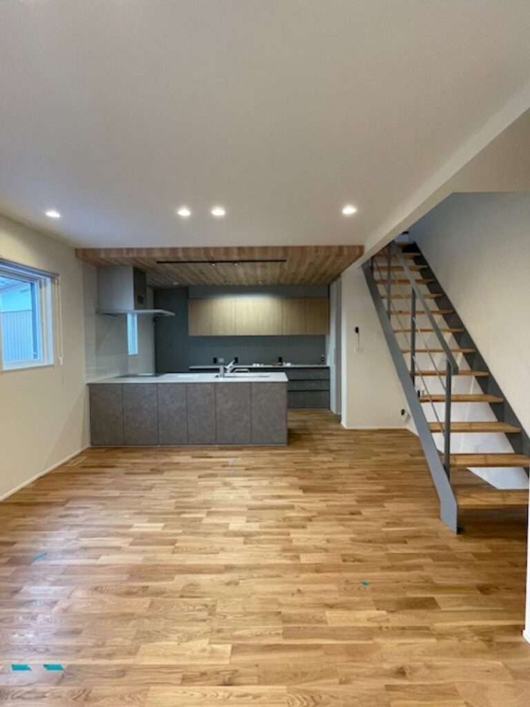 ↓↓LDKはひとつながりの広々した空間。リビング階段で空間をより広く使うことができます。