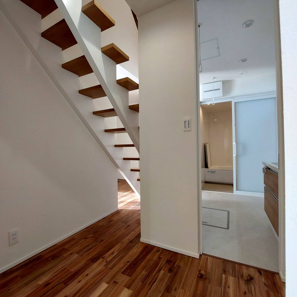 階段は下が通り抜けできてしまう、お子様がとても喜びそうなデザイン。