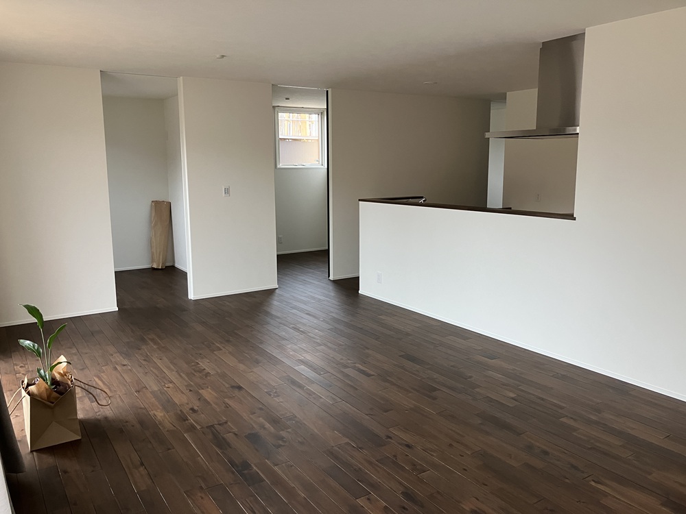 床は無垢材アカシアのウォールナット色を採用しモダンな室内観になっています!