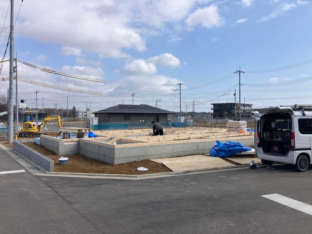 事前に土台を敷いて上棟に向けて準備中です