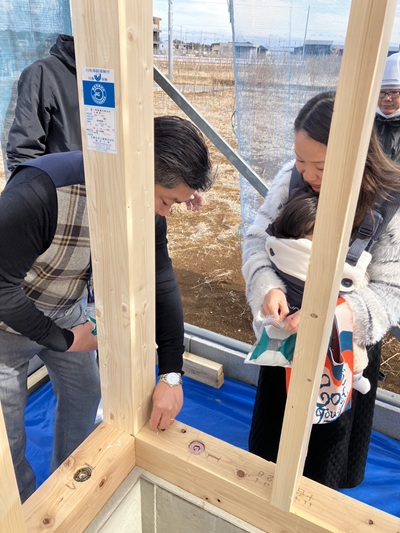 無事、棟上げまで終わりまして、四方をA様とお清めをいたしました。