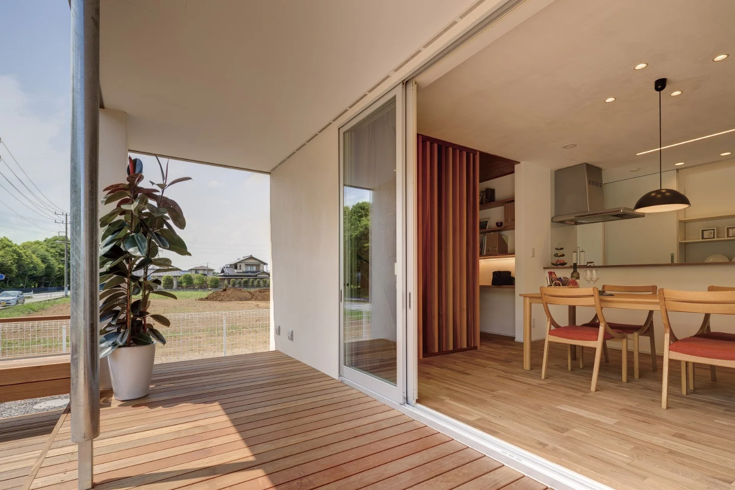 また、ウッドデッキからなるアウターリビングは、窓を開け放ち第2のリビングとしても活用できます。