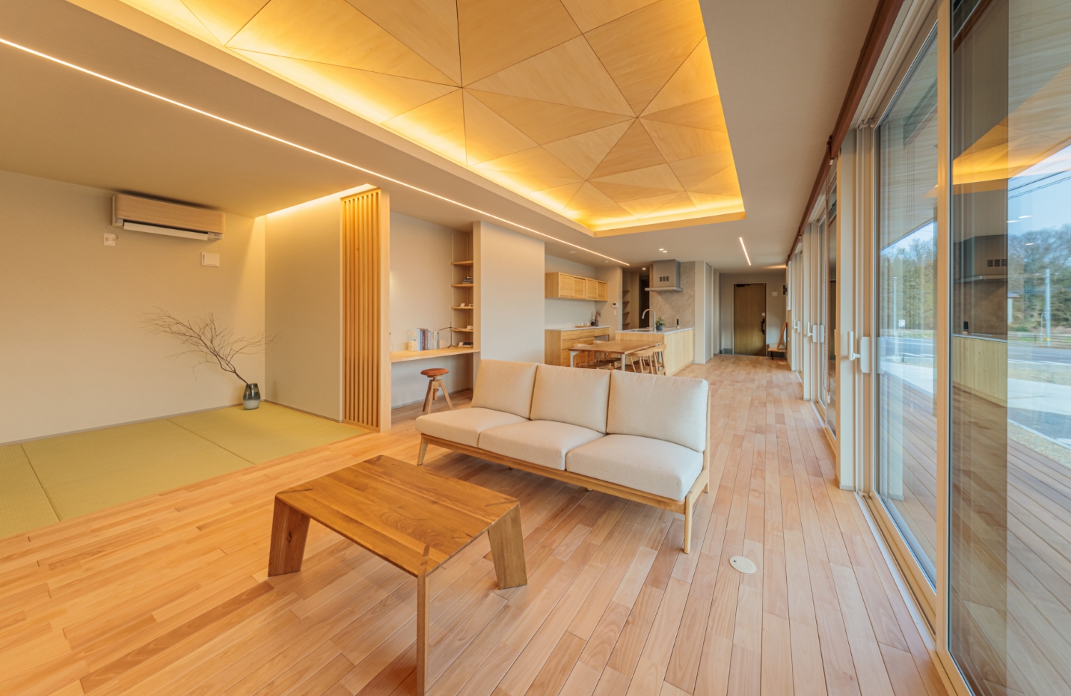 天井高と窓の配置を計算し、時間帯によって光の入り方が変化し、冬は暖かく、夏は涼しい緻密な設計がもたらす快適な空間をお楽しみください。