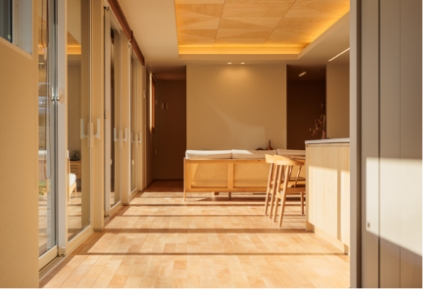 床・天井に使用された天然木の美しい木目が、上質な温もりを演出。