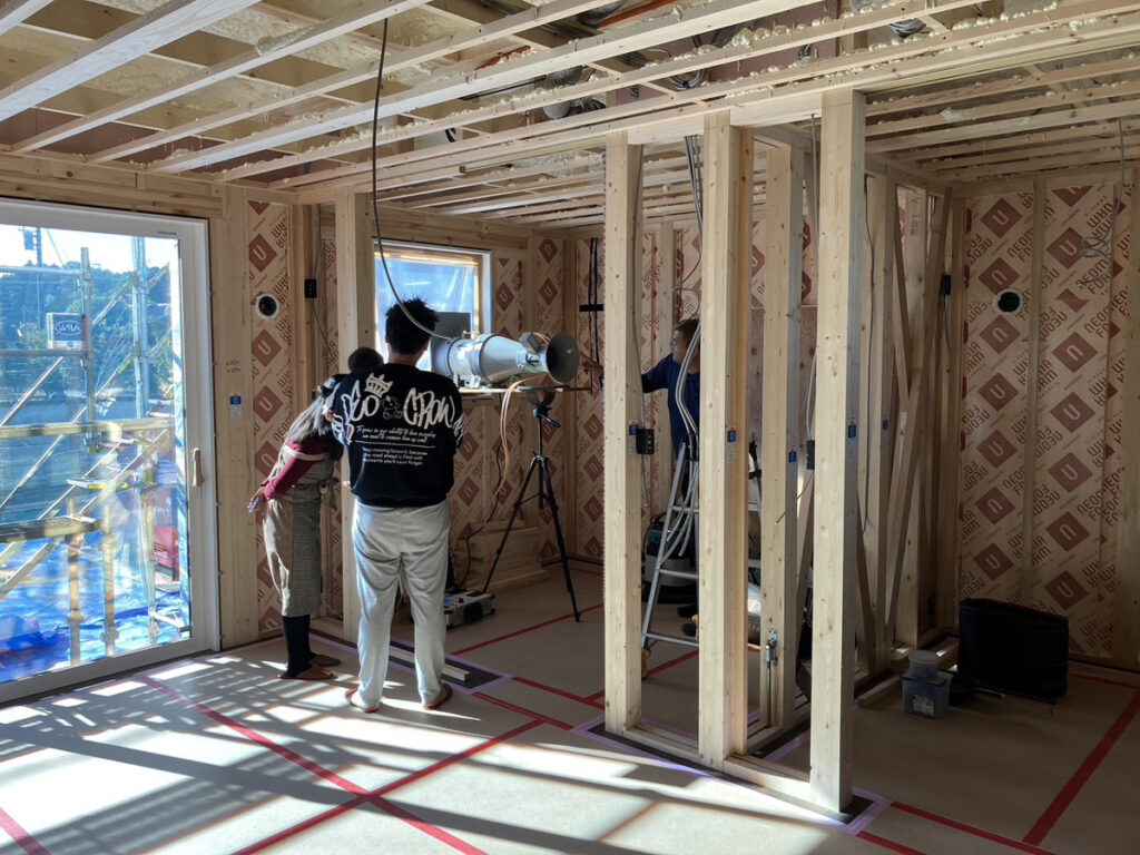 先日、常総市におきまして、O様邸の気密測定が行われました。
