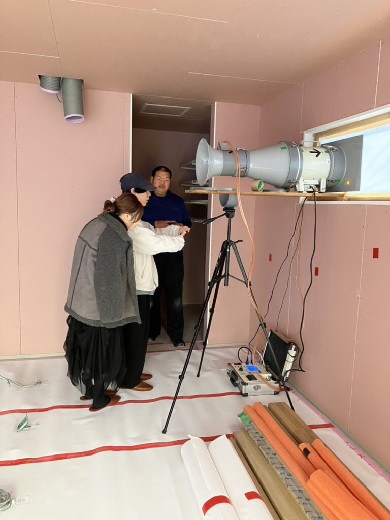 実際に見ていただき、気密の良さを体感していただけました。