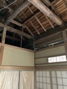 今回の建物は、ハクビシンが小屋裏に入ってしまっていたので、思い切って天井は全て解体となりました。