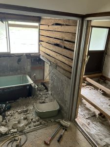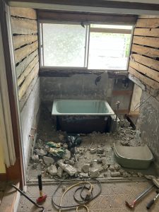 昔ながらのタイルのお風呂も解体です。