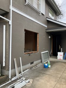 窓は外からビスで止まっている為、窓の周りを外壁ごと解体となります。