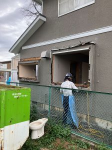 窓は外からビスで止まっている為、窓の周りを外壁ごと解体となります。