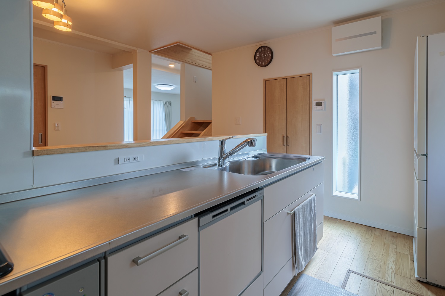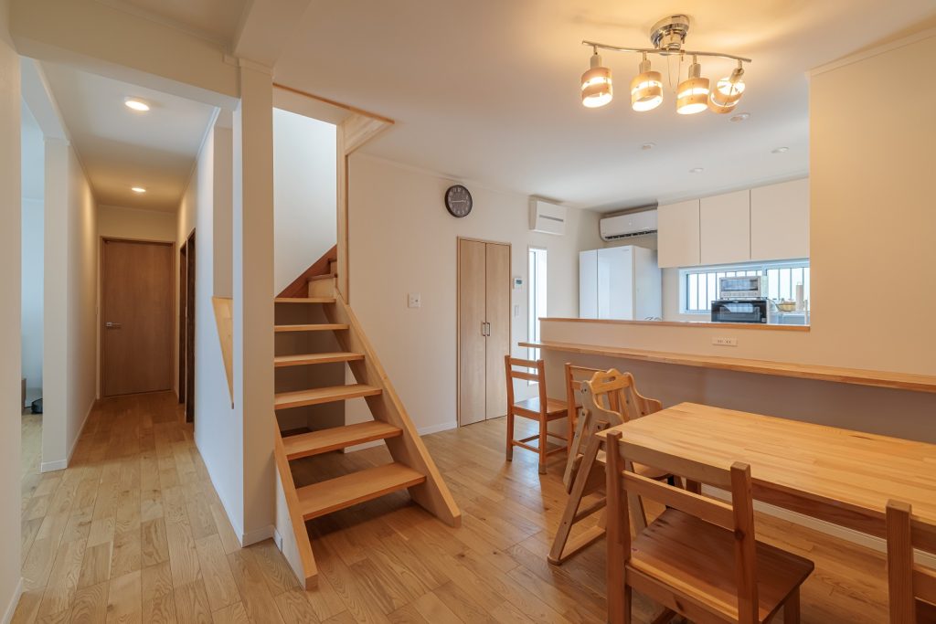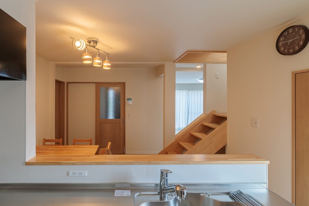 キッチンから階段、リビングにいる家族の様子を見ることができます。階段に腰掛ければ、自然と家族とのコミュニケーションも取れます。