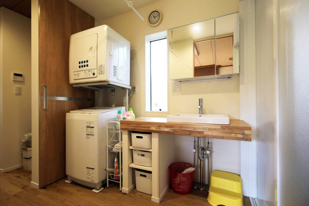 今まで暗く、寒かった脱衣洗面所ですが、スペースを広く取ったことで使いやすく。寒さも改善されました。