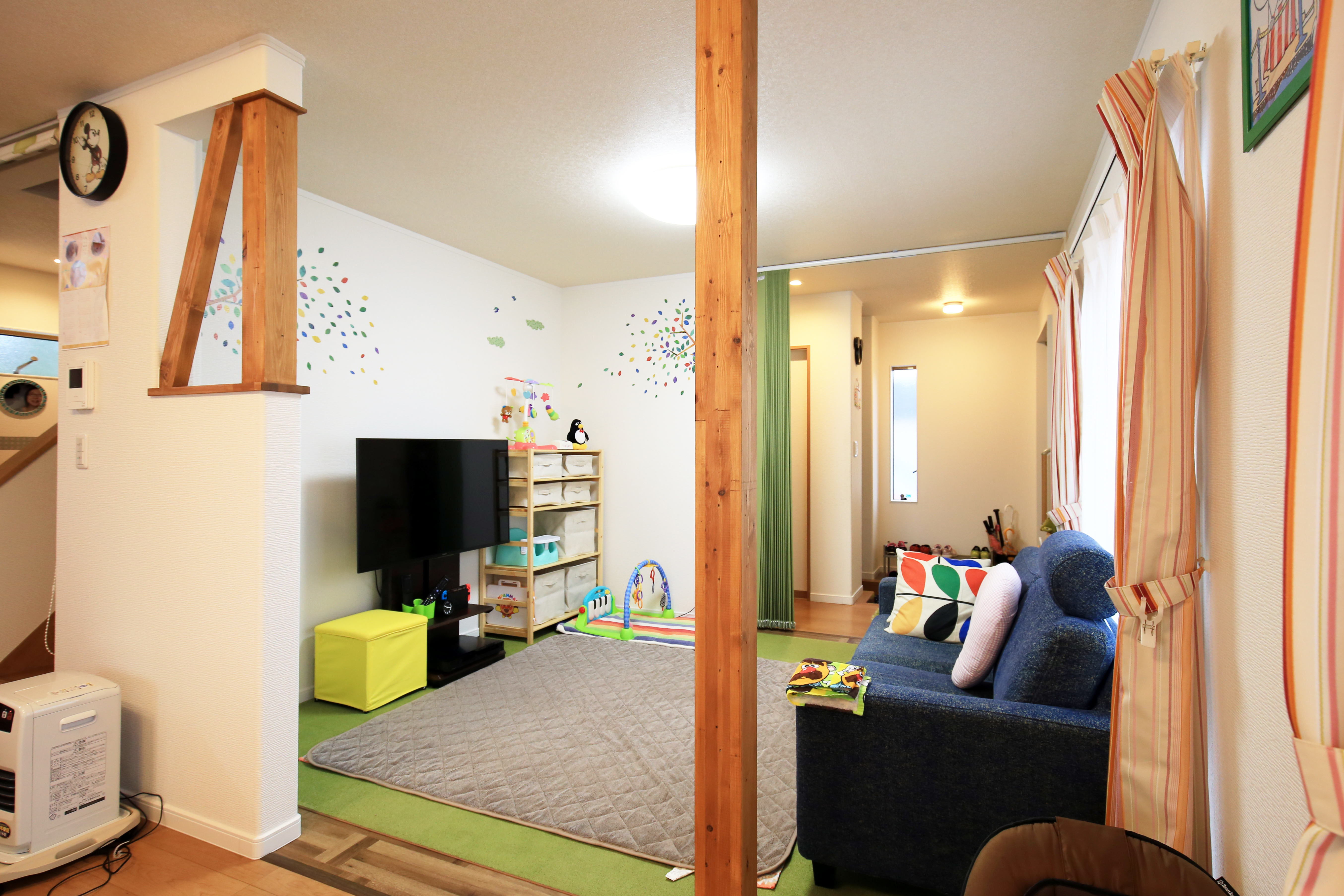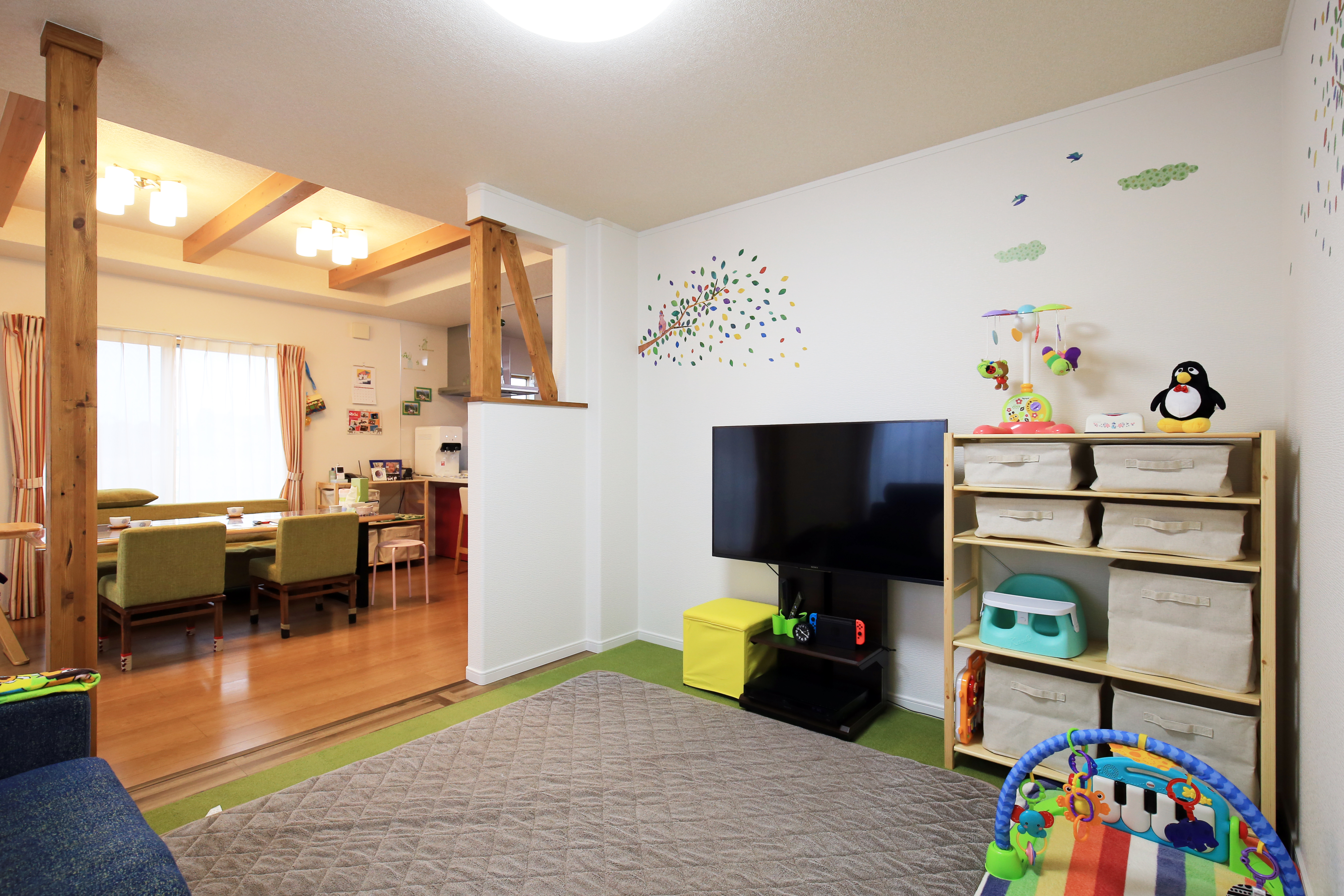お子さまが産まれたことで増築を考えていたS様。間取りの変更でリビングが広々とし、動線も考えられているので、生活しやすくなりましたとのお言葉をいただきました。家族が集まるリビングでゆっくりとお子さまたちと遊べますね。