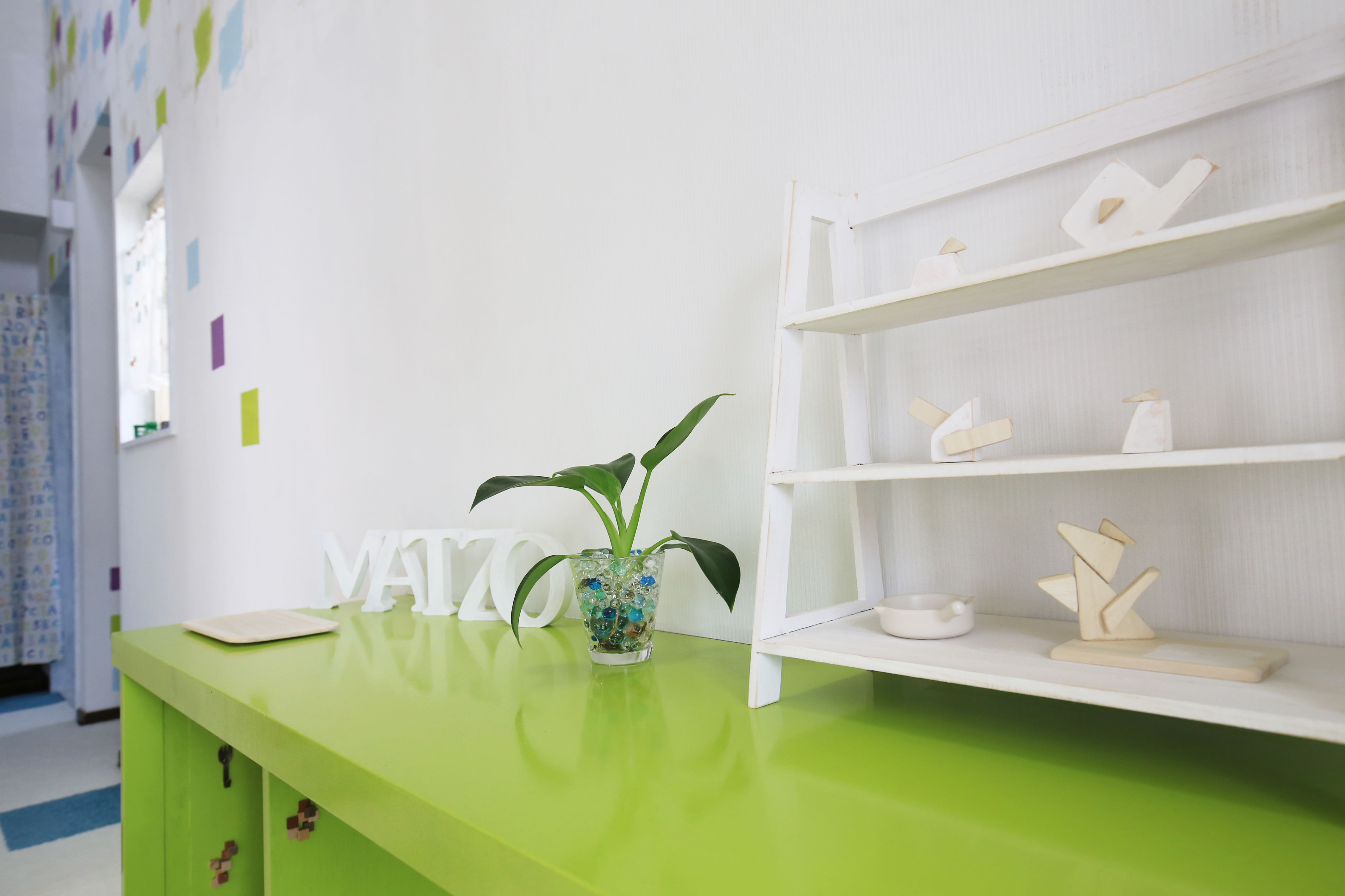玄関を入るとオーナーご夫婦がDIYした、フレッシュ感あふれる内装。