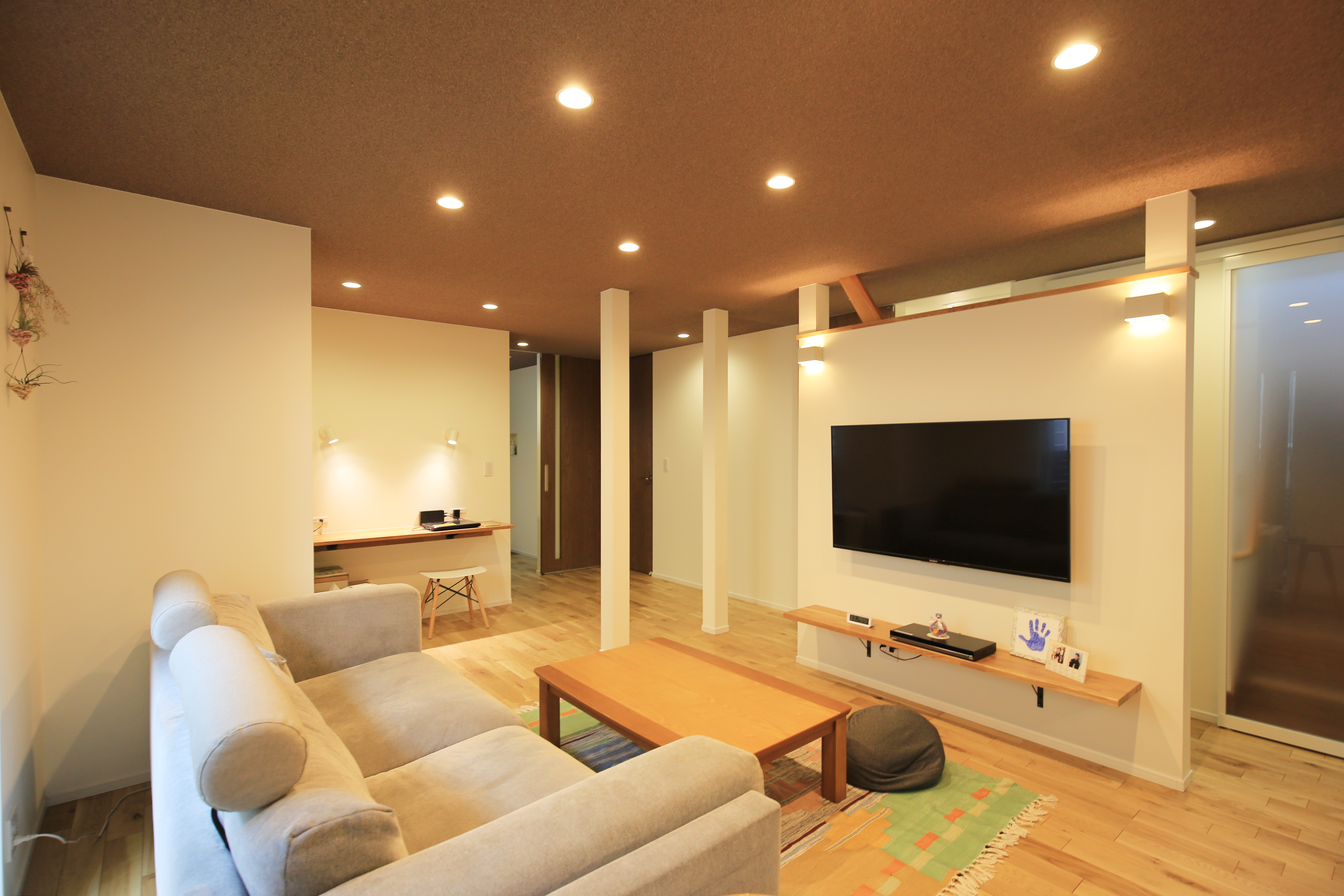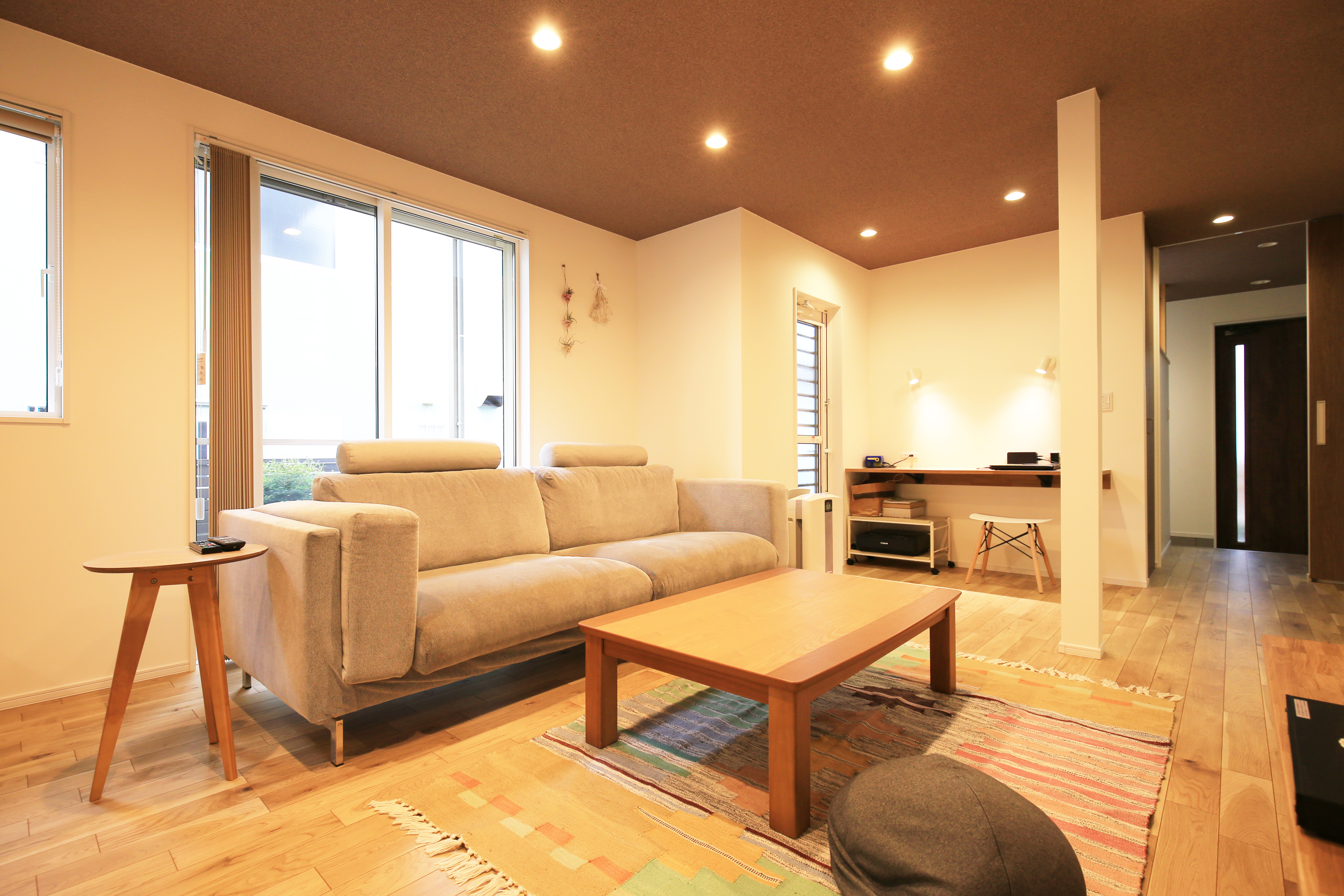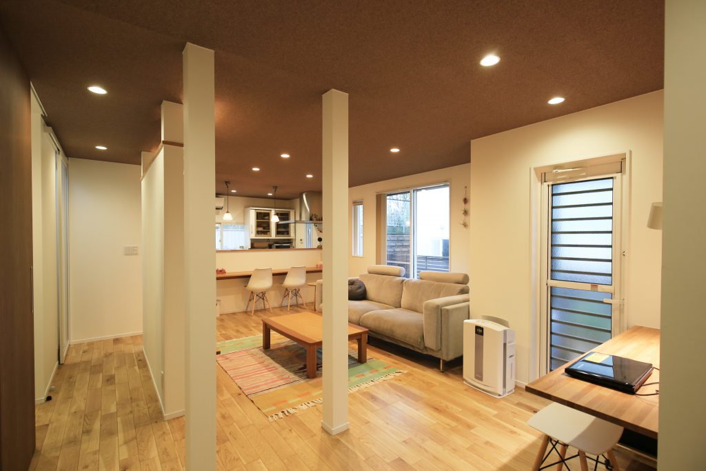 使っていない部屋を持て余していたこともあり、玄関の位置を変えて、開放感のある明るいリビングに。