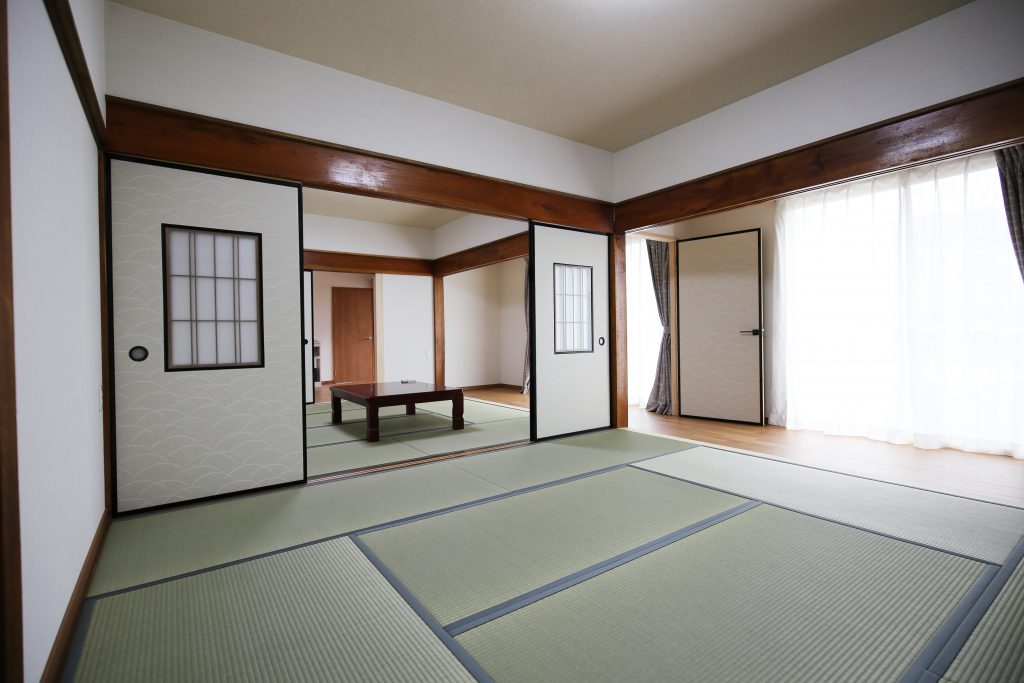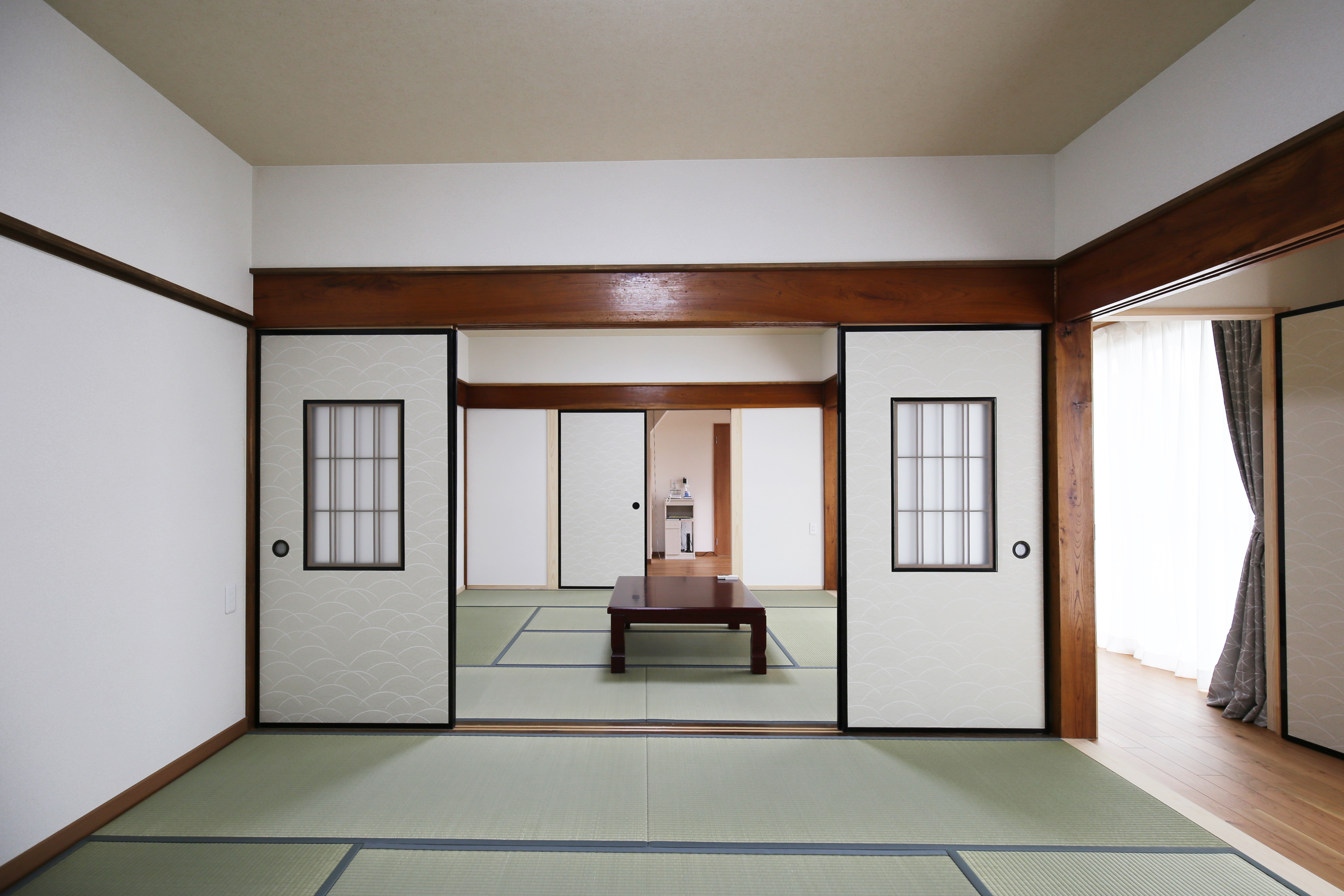 広縁にドアをつけたことで、空間を分けることができ、