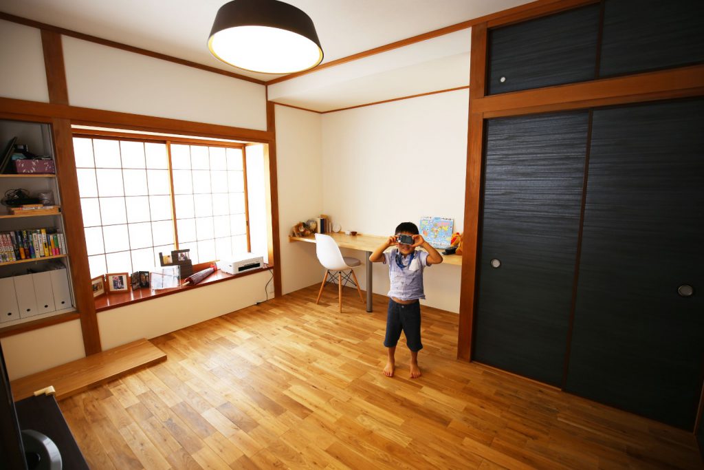 2階の和室は子ども部屋に。床の間があった箇所にカウンターを付け、勉強スペースに。