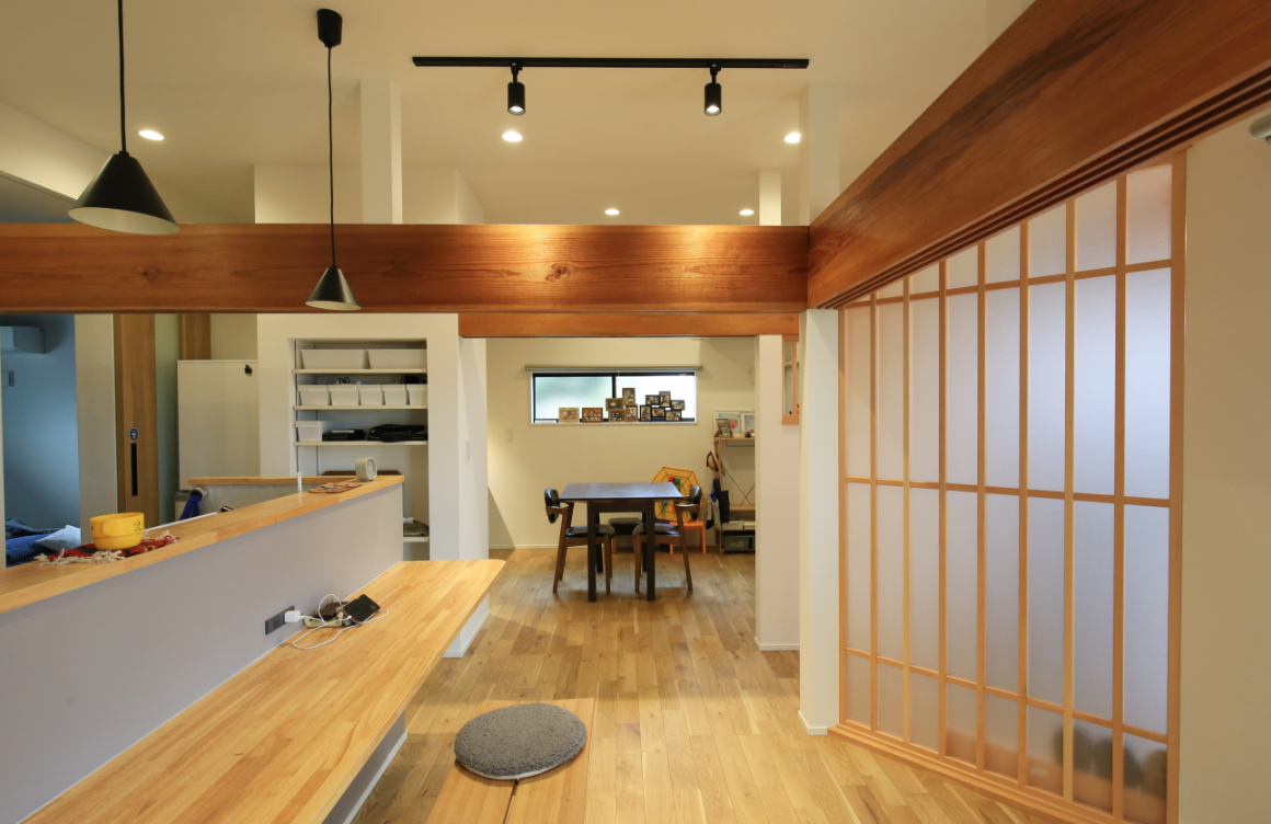 無垢材ならではの温もりを活かし、住まいにやさしい質感と落ち着きをもたらすデザインをご提案しています。特に、和の意匠として古くから用いられてきた差し鴨居(さしがもい)は、構造を活かしながら空間へリズムと奥行きをつくり、天然木の美しさがより引き立つポイントに。素材そのものの魅力を暮らしに取り入れ、“愛着が育つ空間”を形にします。