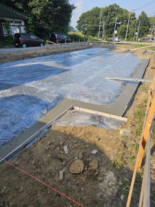 さらに基礎形状を正確に造成するため捨てコン(捨てコンクリート)を外周部に施工。