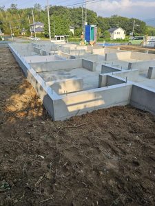 基礎の鉄筋を組み、床ベースにコンクリートを打設。