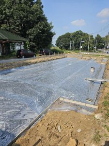 その後、地面からの湿気が侵入しないよう防湿シートを敷き、
