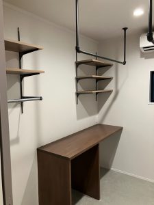 洗濯物を畳んだりアイロンがけができる 作業デスクも備え、