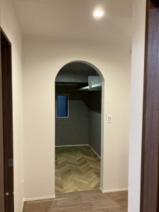 洗濯後は、アーチ壁の先にある ファミリークローゼットへ。