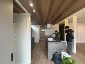 リビング全体を見渡せるため、家事をしながら自然とコミュニケーションが生まれます。