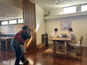 まずはアフターメンテナンス担当の松崎さん・番野さんから撮影スタート。