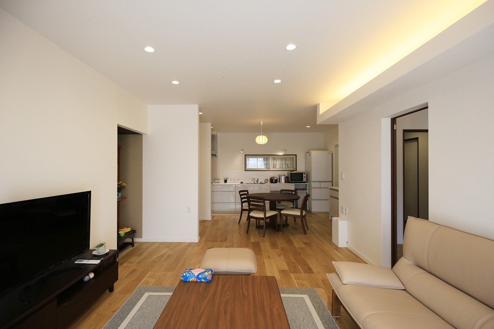 築43年のお家で住むのに不安もなく、安全に生活できるようなお家です。耐震診断もしっかりとやっていただきました。シンプル・すっきり・無難とアドバイザーの方に伝え、仏壇も今まで暗い部屋にあったので、家族が集まる明るい所に移動し、祖父母が一緒に住んでいるので、祖父母の部屋近くにトイレも設置しました。