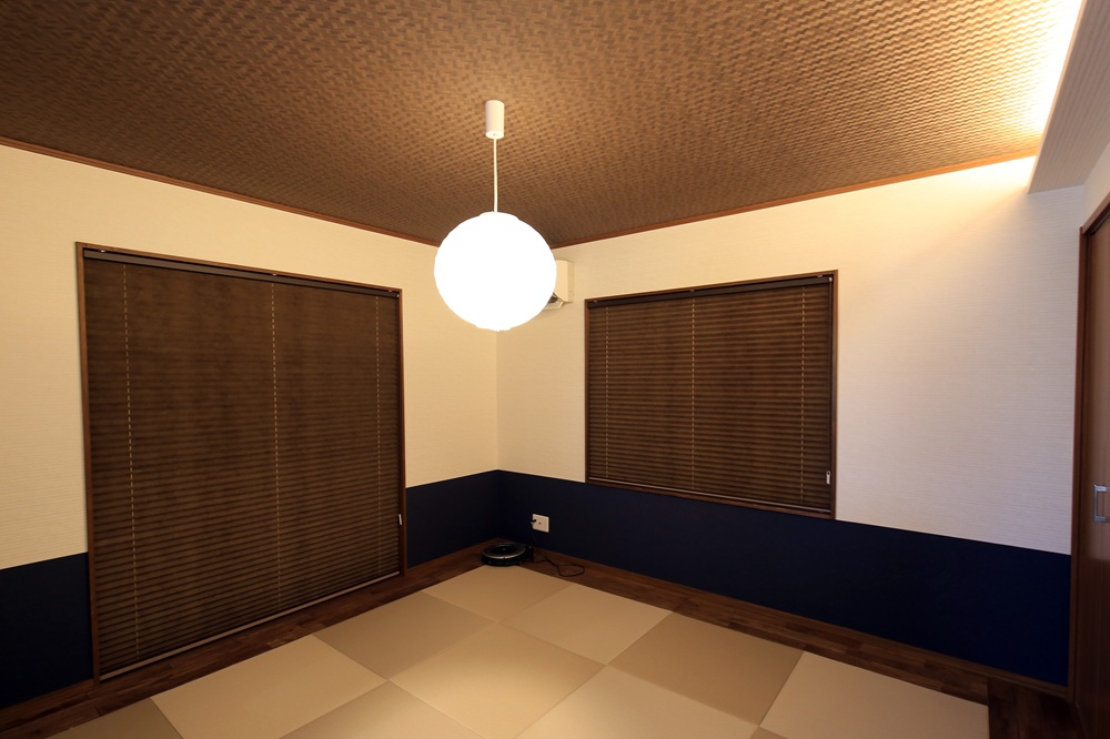 おしゃれな家にしたいと思いましたが、これといったイメージはなく、担当アドバイザーに相談しながらアイデアをもらったり、迷った時は担当者に投げたりもして、自分たちの思いつかない提案を出してくれました。和室は子どもたちの遊び場でキズや劣化が目立ってましたが、和紙畳にしたことでメンテナンスがラクになりました。畳に家具等の跡が付くのが嫌なので四方を板の間にしたことで、旅館風?の和室になったかなと思います。夜になると照明で雰囲気が出ます。